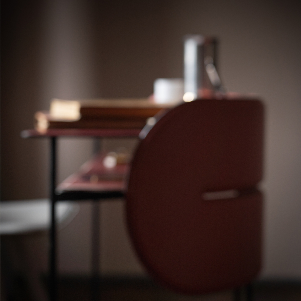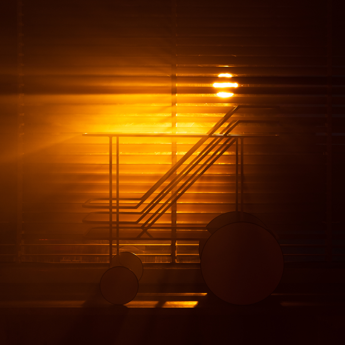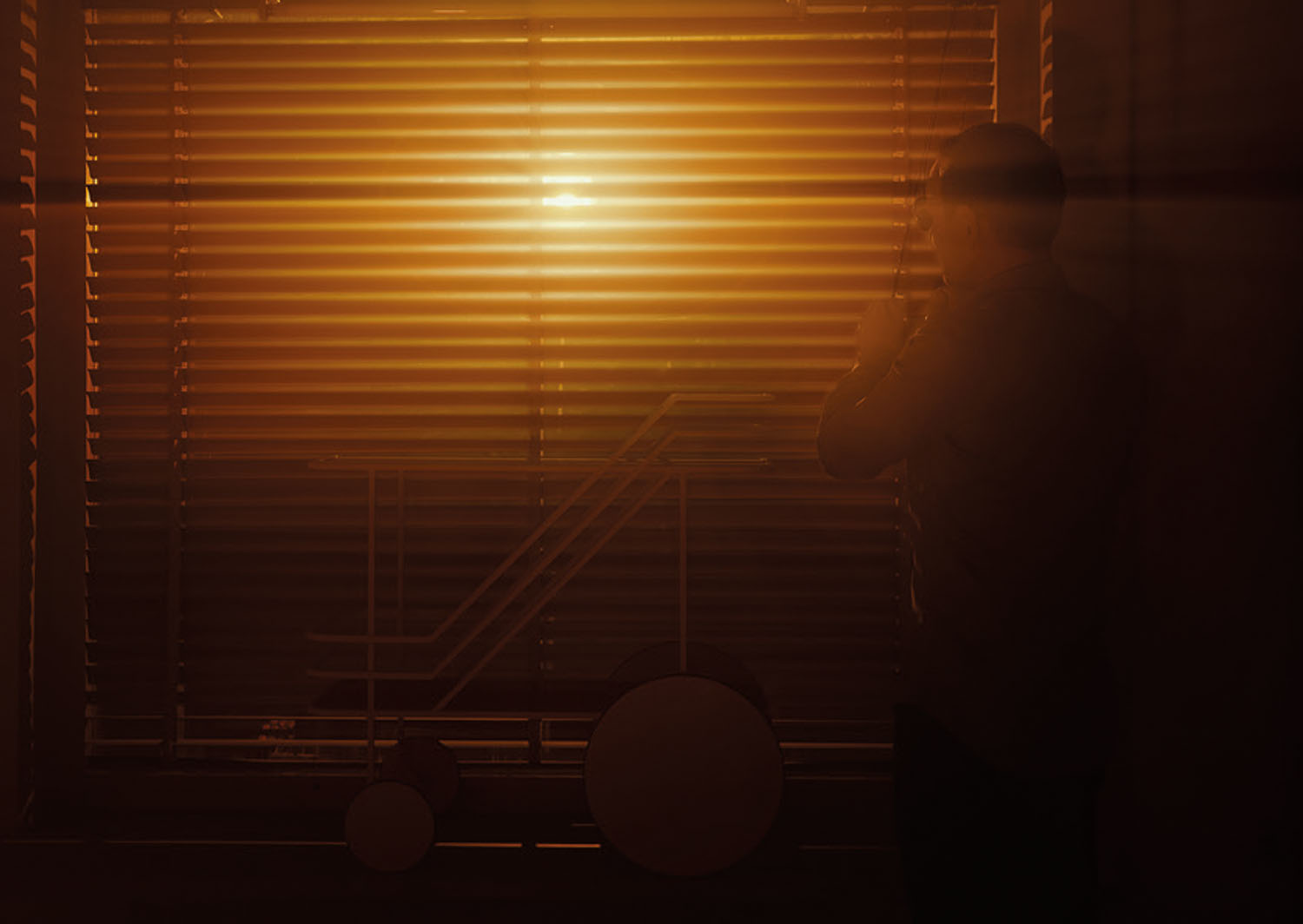 The Martian sunset’s bright light pierces the drawn blinds of the little shops front window in which a slick red BAR CART is on display. JOSHUA (45), who has just closed the blinds, is wearing a pair of mirrored Aviator sunglasses and now stands motionless and looks outside at the red planet‘s dusty dawn.