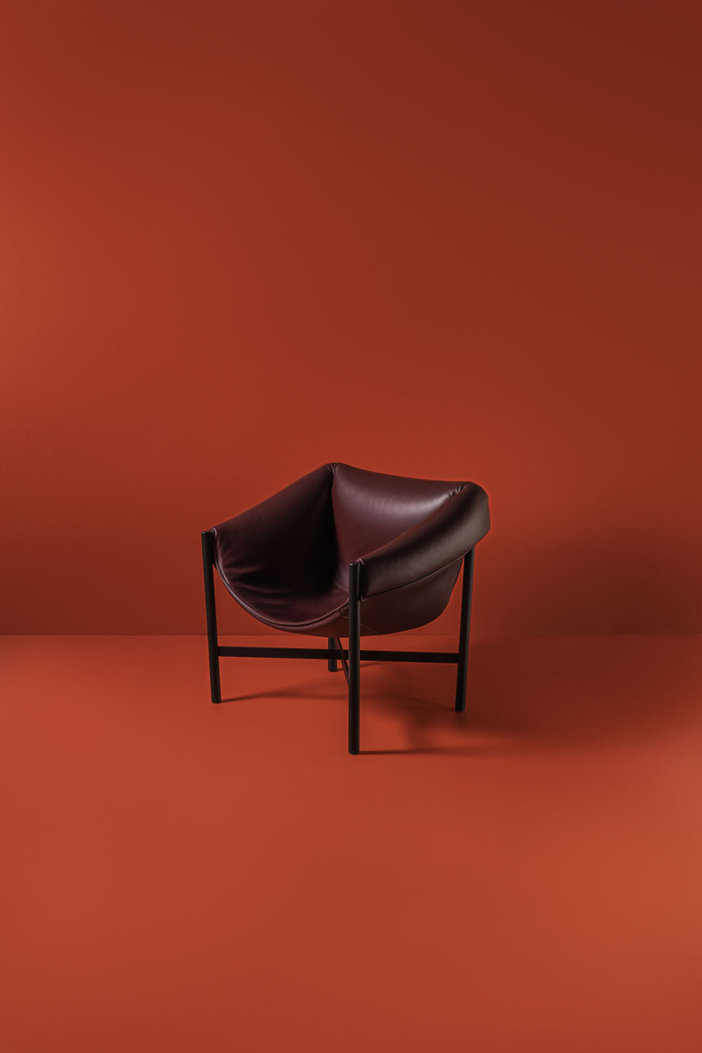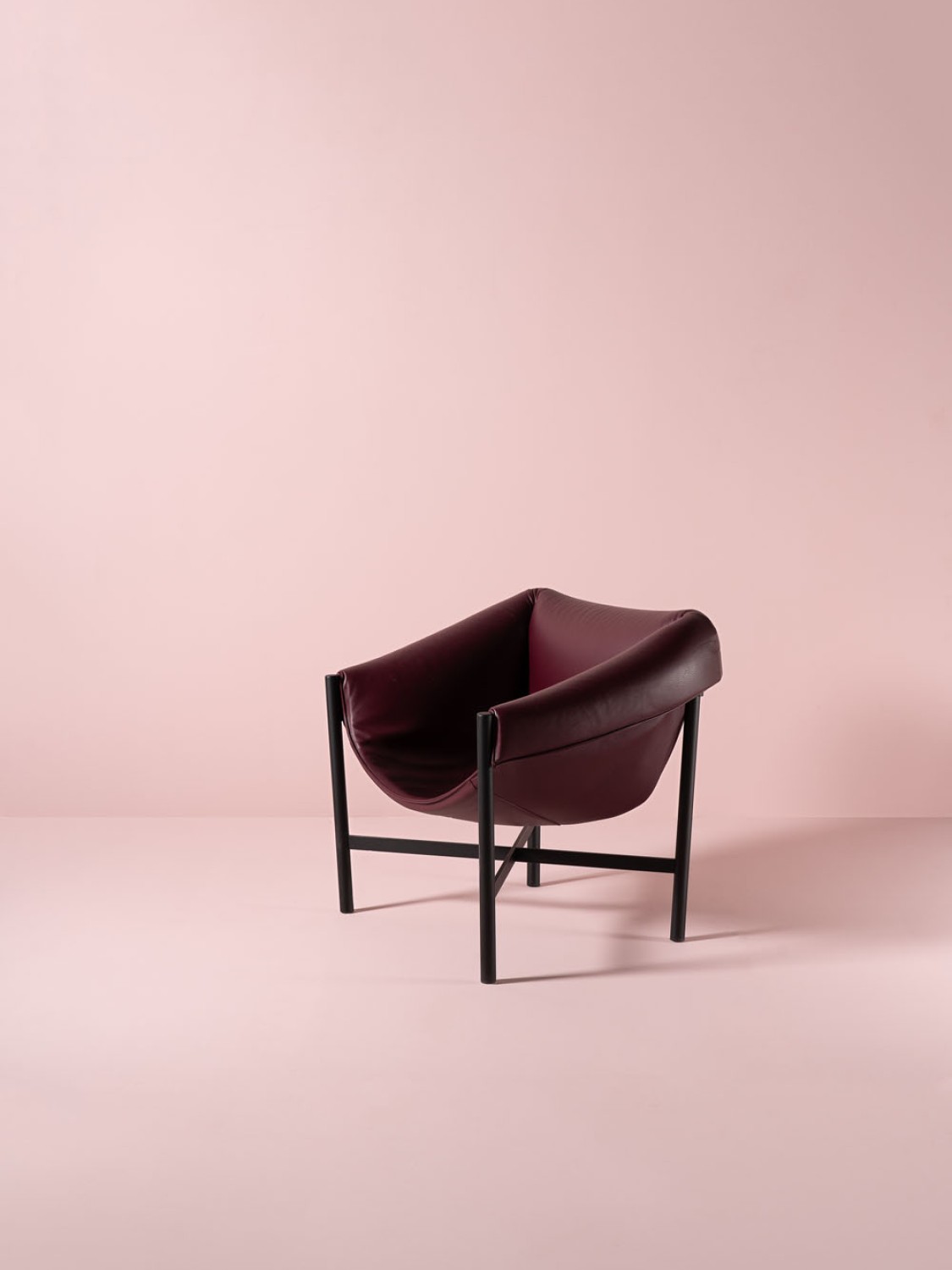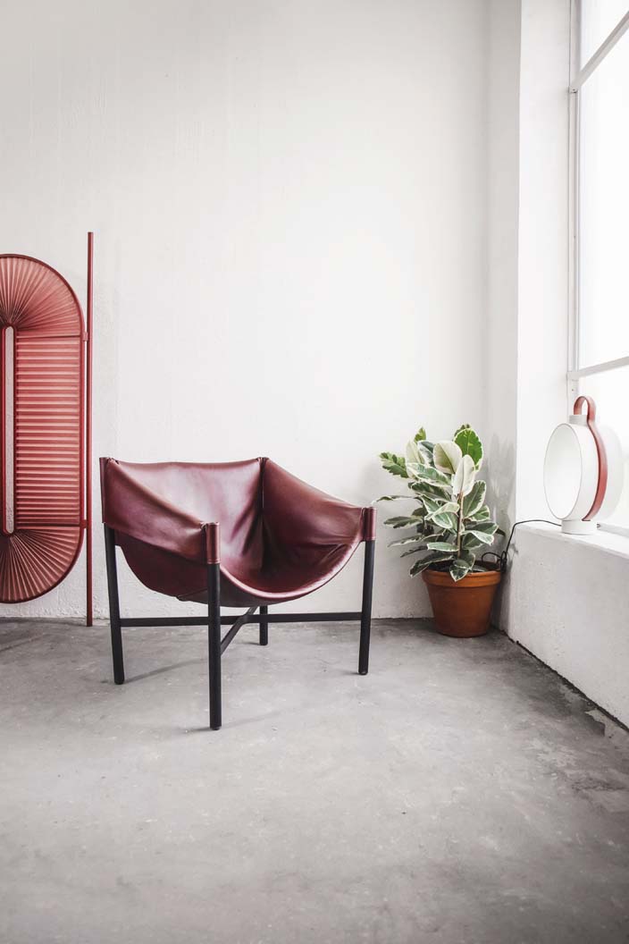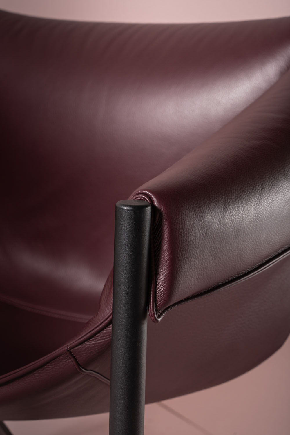 Falstaff is a leather dressed armchair with a powder-coated metal structure. The unconventional way the seat is fixed to the tubular frame is carefully studied in all details. The opulent seat is a result of exploration beyond the limits of common upholstering.