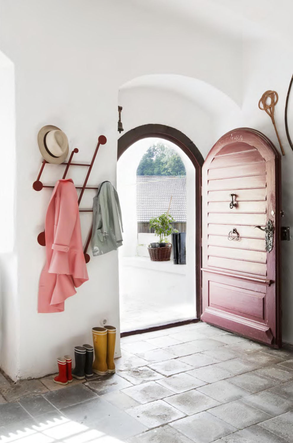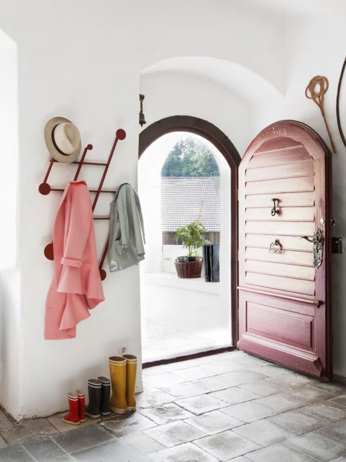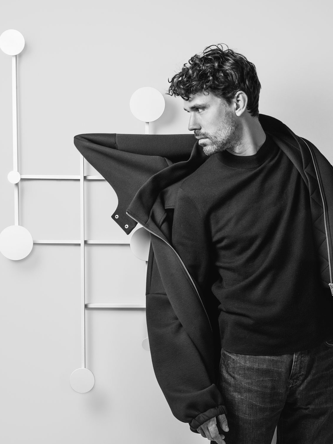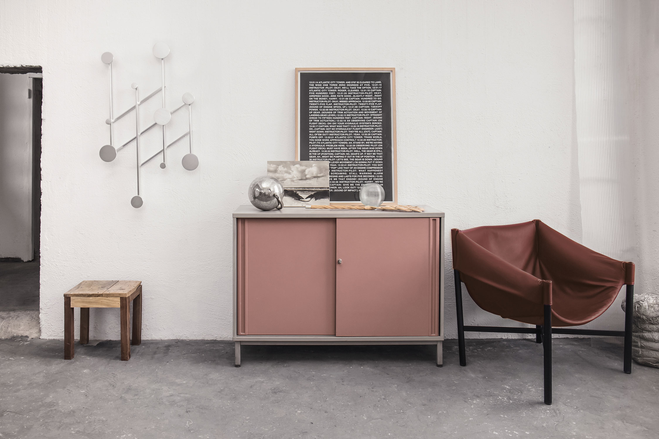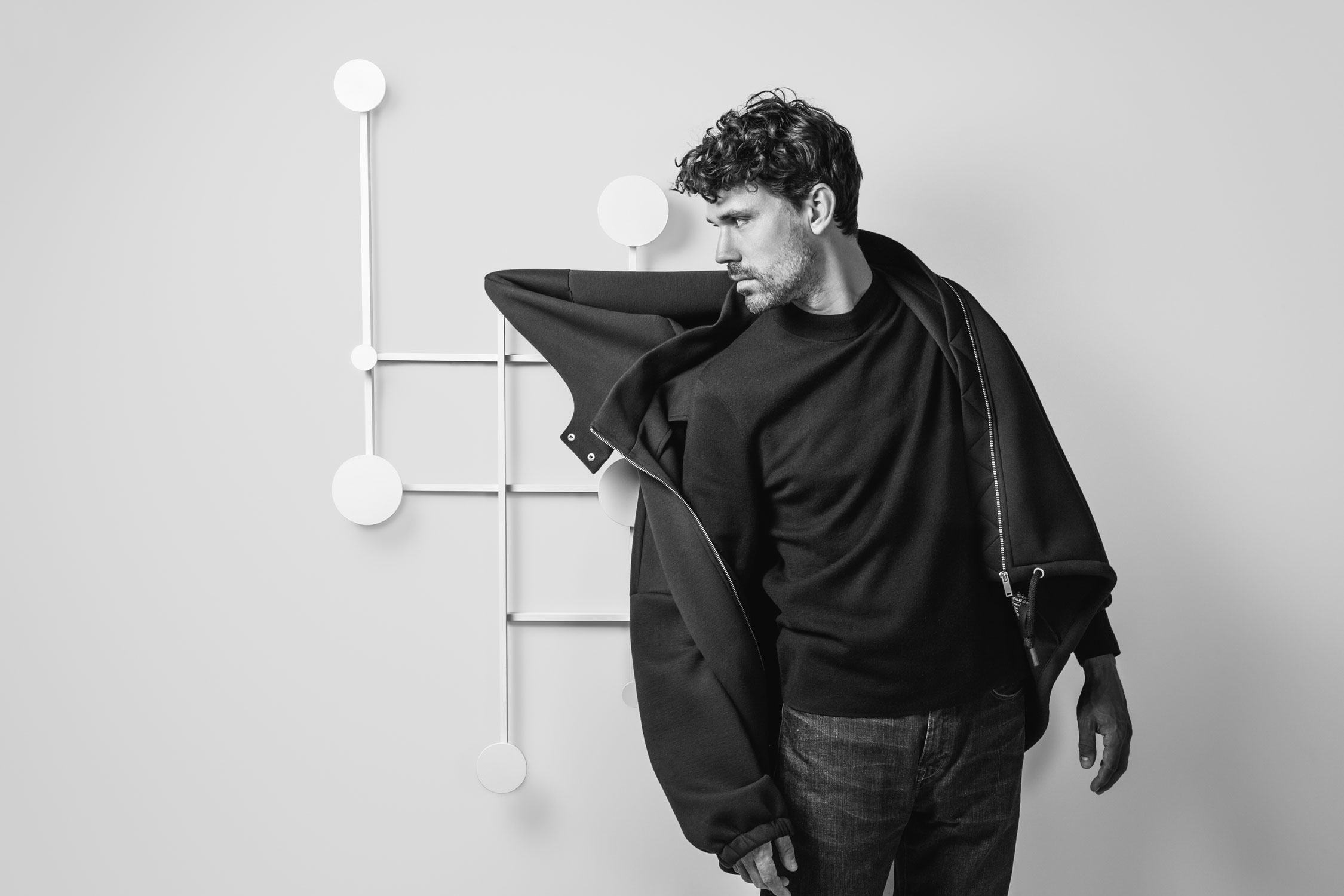An adjustable aluminum coat rack inspired by the classic accordion-style design. Its strong geometric shapes and black and bronze color palette create a wall piece that is both decorative and functional. The asymmetrical design adds a playful touch.