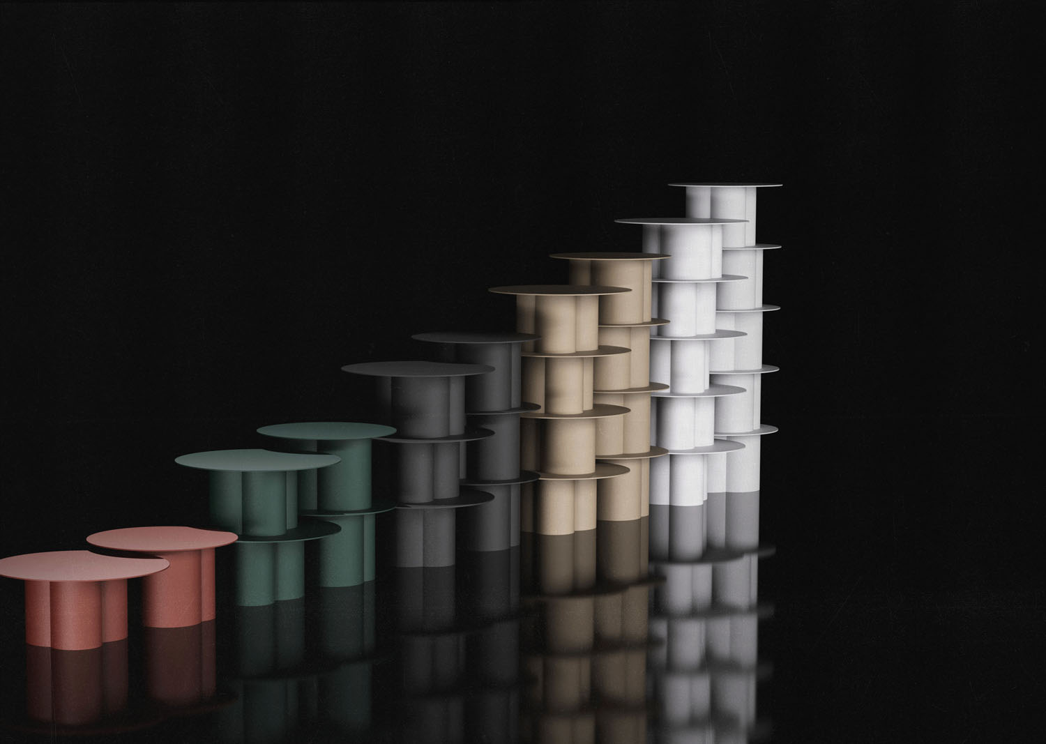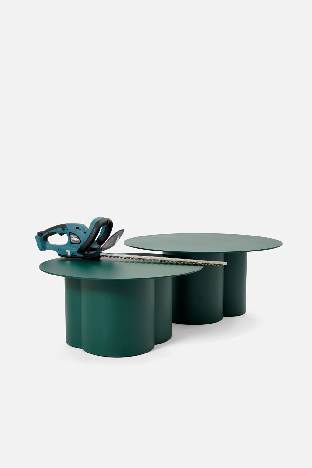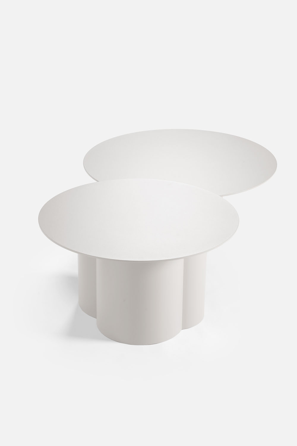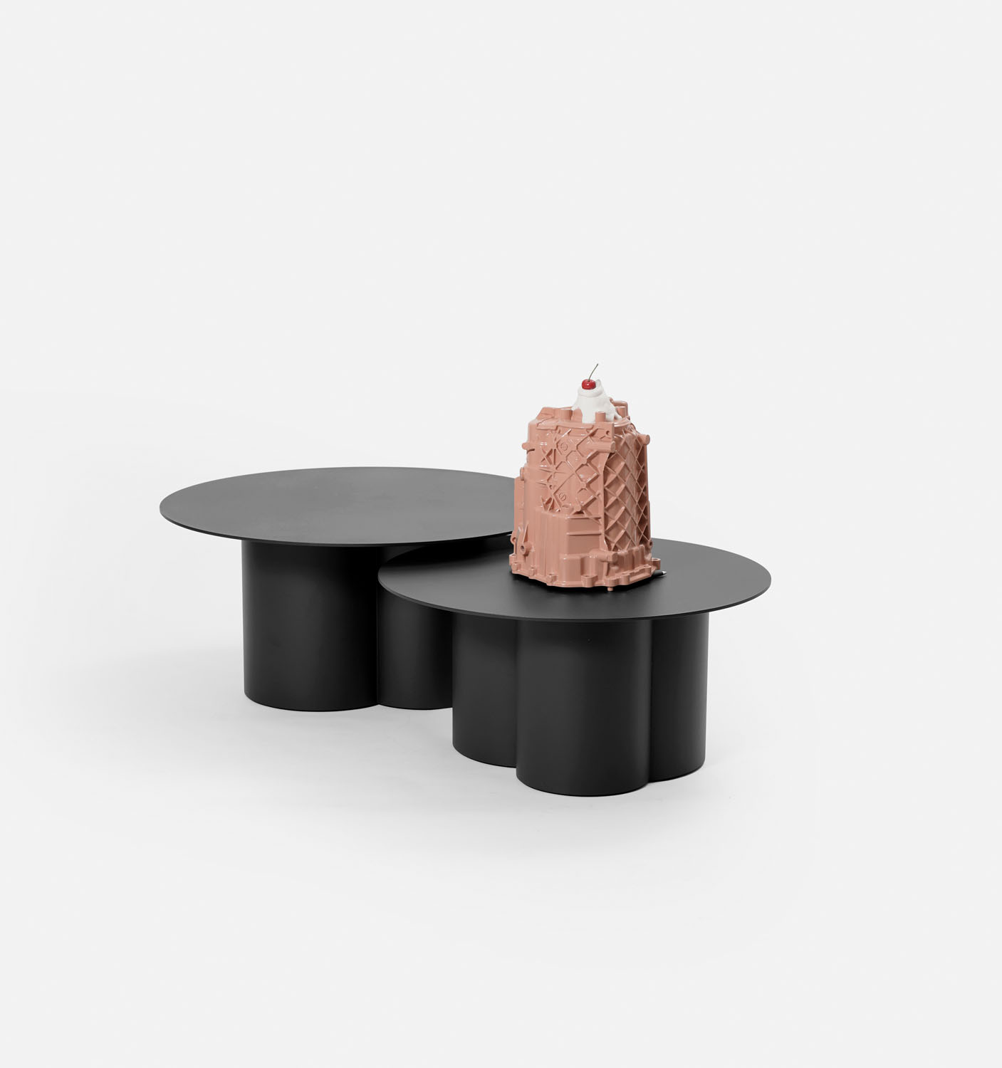 Rayons are a pair of low tables with different heights. The three overlapping radiuses of the base are set out to appear different from every perspective. Rayons explore the minimal variance needed to make a difference – those subtle changes which distinguish an individual from a series, here expressed in the supporting base.