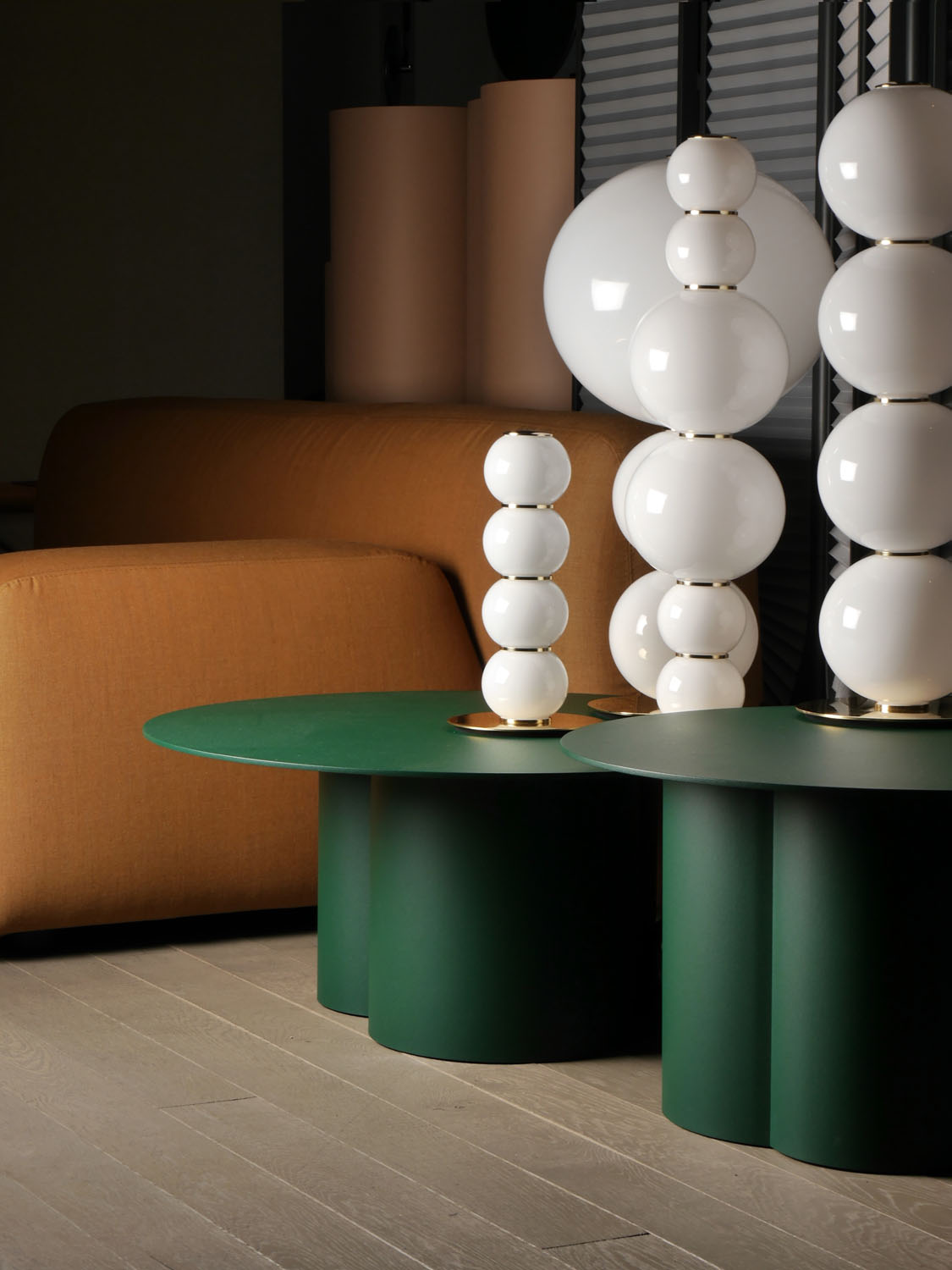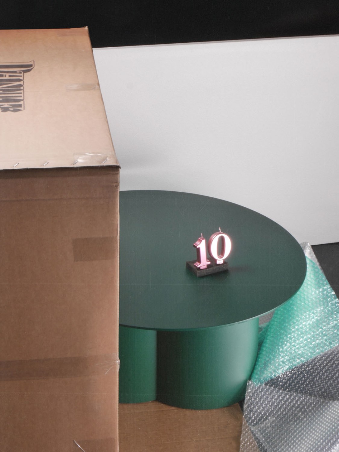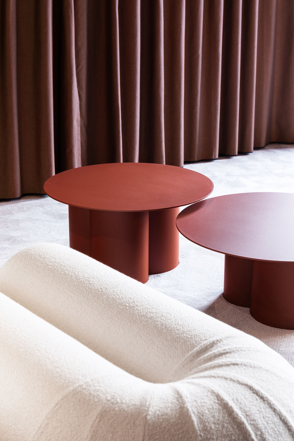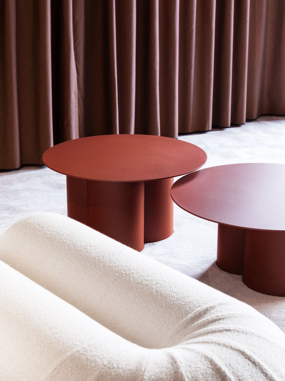 Rayons are a pair of low tables with different heights. The three overlapping radiuses of the base are set out to appear different from every perspective. Rayons explore the minimal variance needed to make a difference – those subtle changes which distinguish an individual from a series, here expressed in the supporting base.