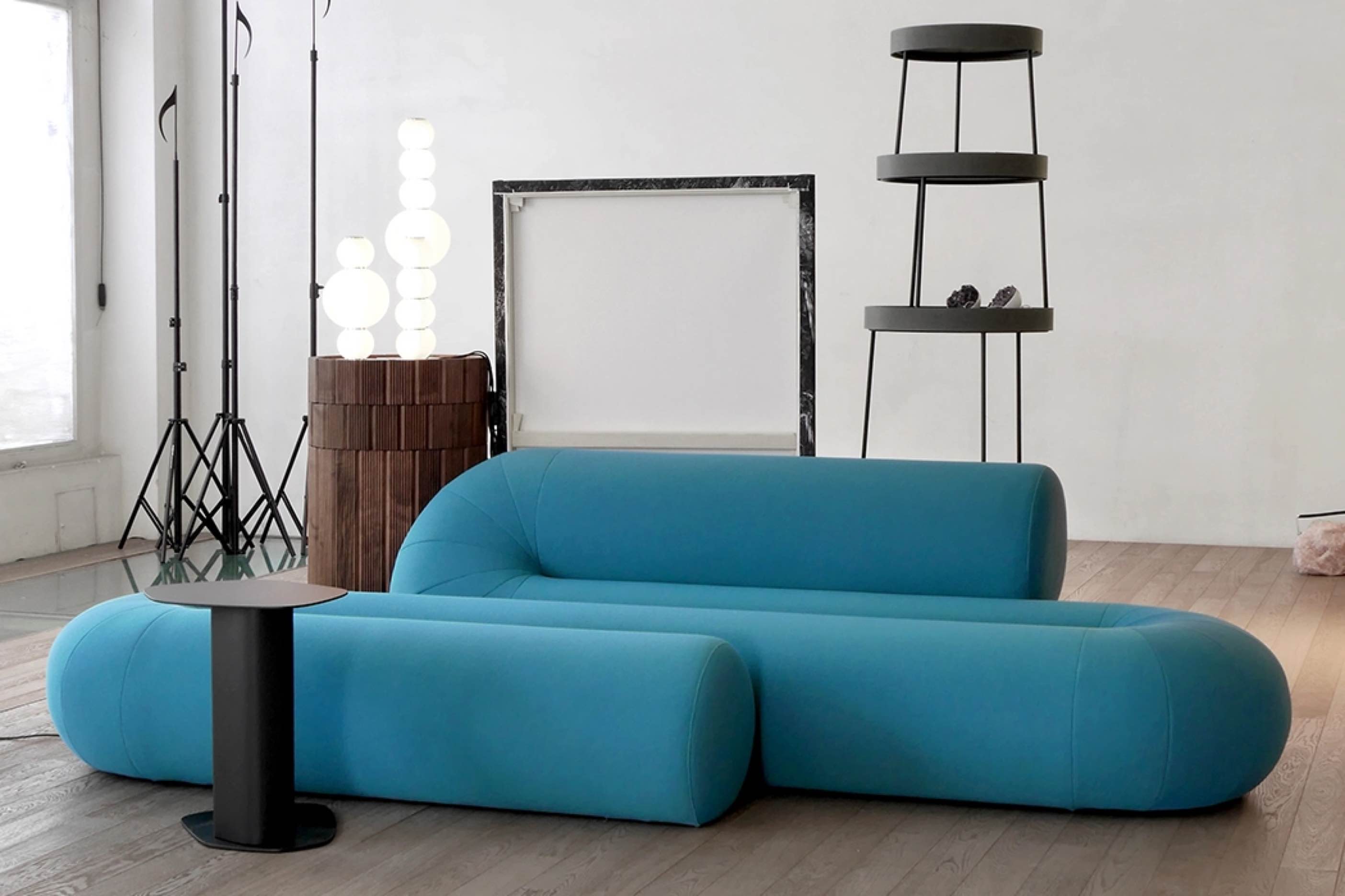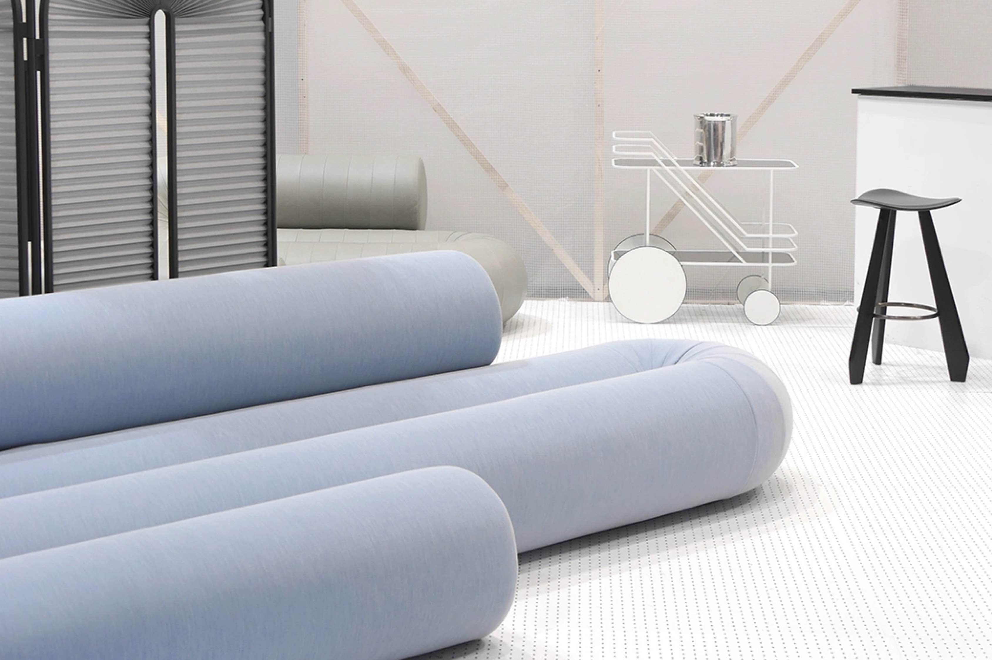 Serpentine couch takes the challenge of rethinking a modern sofa by incorporating different seating solutions in one fluid object. The alternation of back and leg support mimics the functionality of a classic seat, a pouf, and a chaise longue. Serpentine looks like a conclusive singular, but is actually a system, available in different sizes, constellations, and finishes. The mix of different foam densities is carefully set up to appear robust, yet soft and inviting to enjoy the luscious comfort.