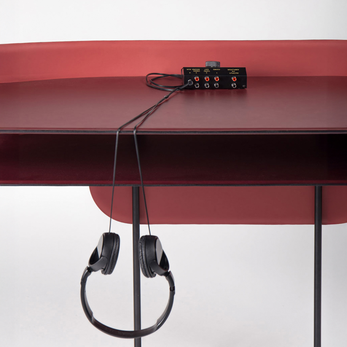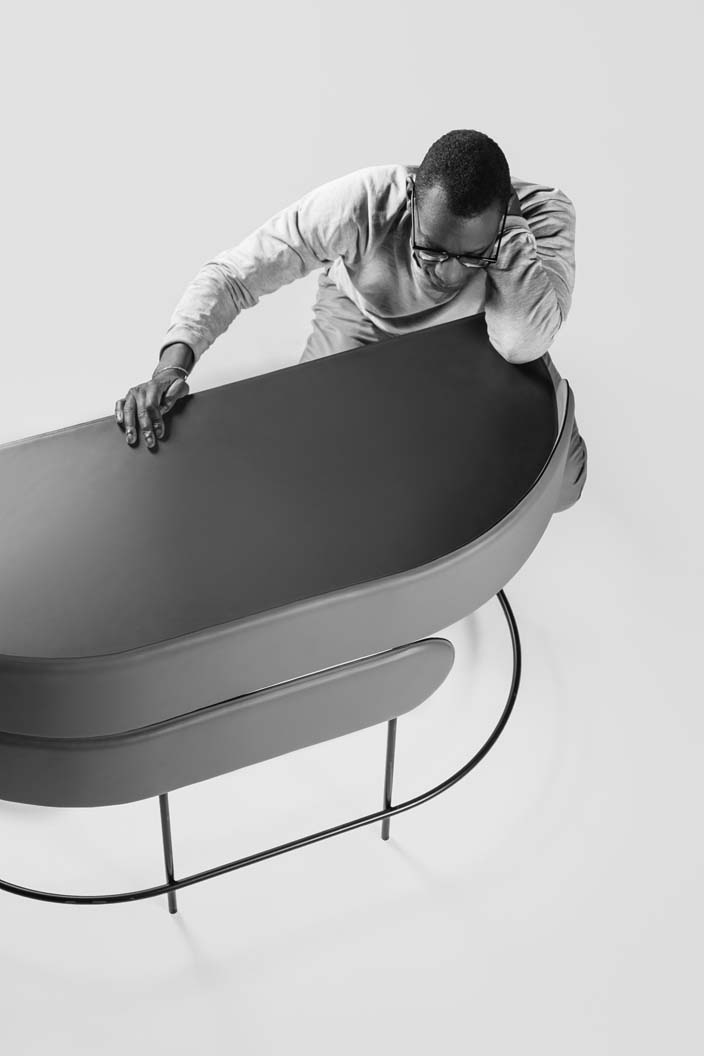Myself and I is a desk with powder-coated structure, and padded leather top and screen. To maximise comfort and practicality, the smooth-lined minimal base doubles as a footrest and the top is completed with a storage space. The all-over leather padding creates an embracing vibe of a hideaway, for those moments of deep thought spent in solitude.